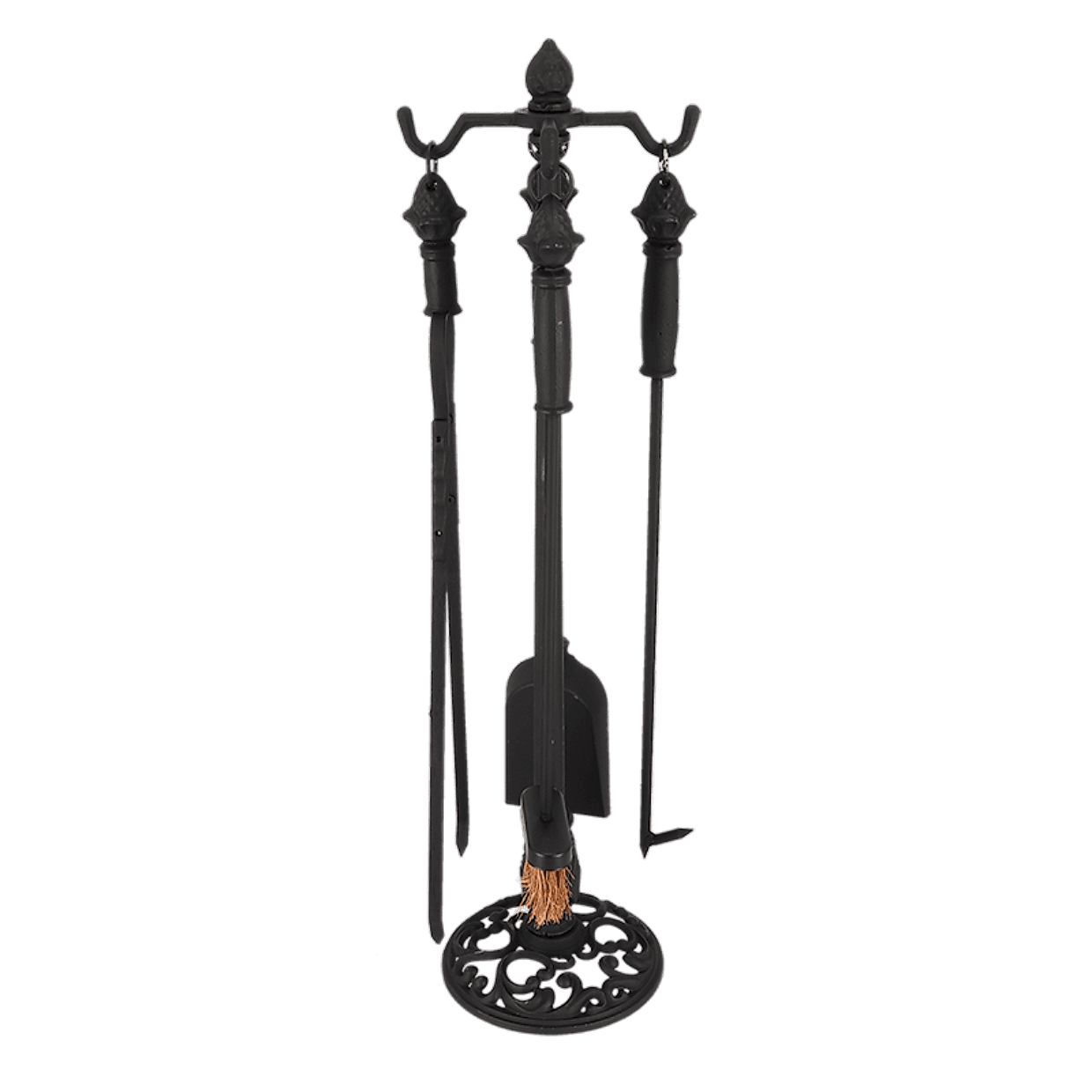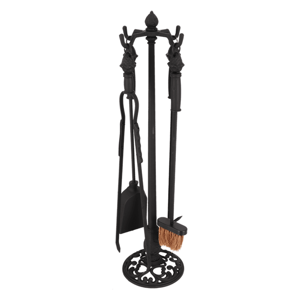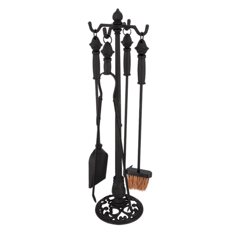 Bu klasik şömine alet seti, klasik tasarımlı dört alet ve standdan oluşmaktadır.