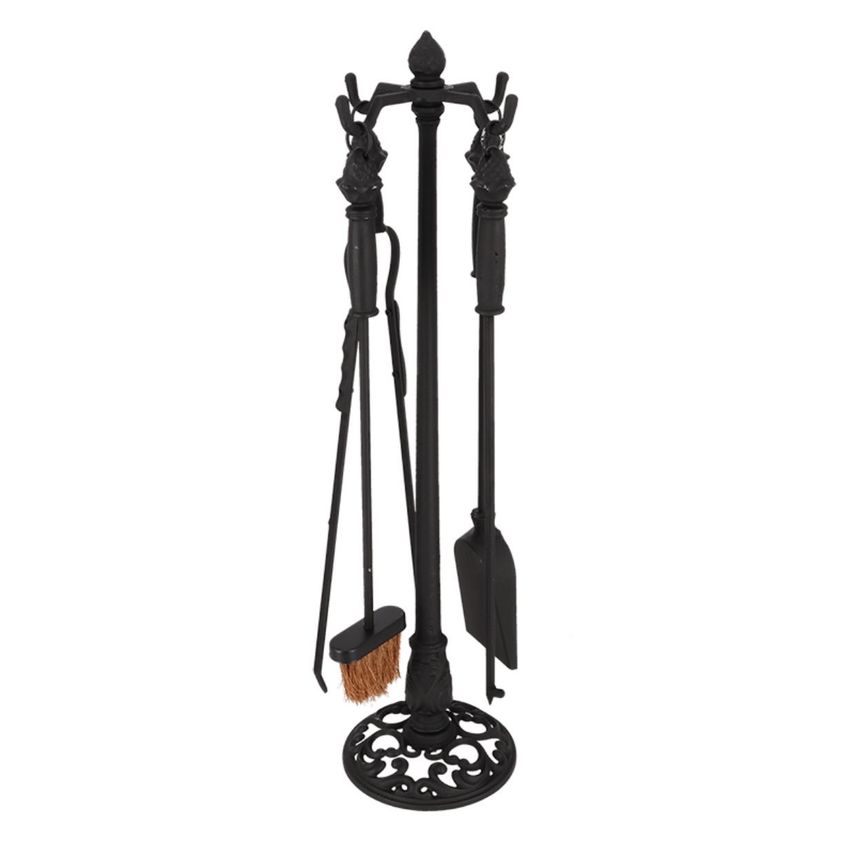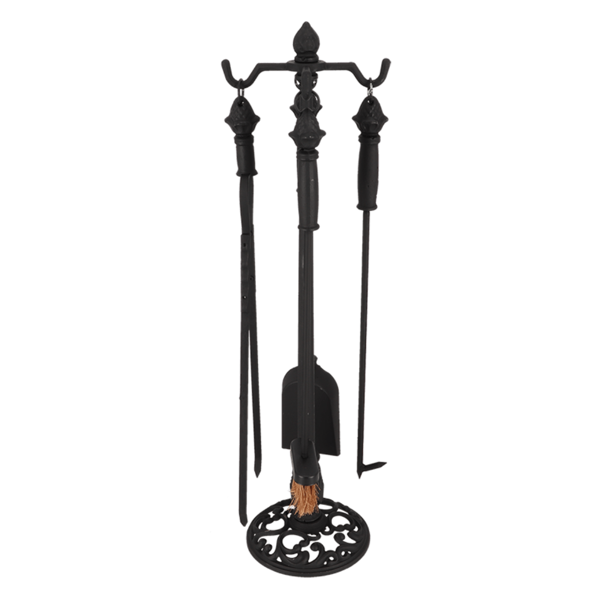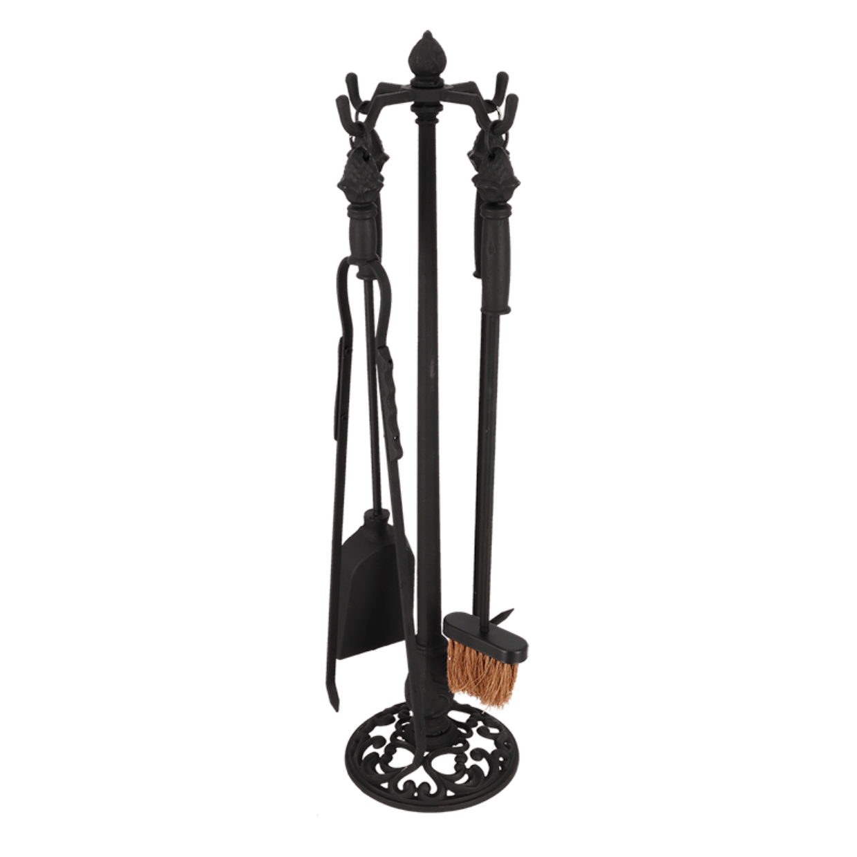 Bu klasik şömine alet seti, klasik tasarımlı dört alet ve standdan oluşmaktadır.